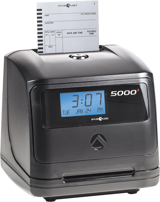 Pyramid Time Systems - Model 5000 Auto Totaling Time Clock, Employee in/Out Time Tracker for Small Business, Includes: 25 Time Cards,1 Ink Ribbon Cartridge, 2 Security Keys and User Guide - Black