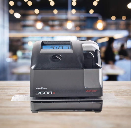 Pyramid Time Systems - 3600SSK1 Smart SiteTime Clock and Document Stamp with SmartSite LED Alignment and Tri-View Window - Includes 125 Time Cards, Time Card Rack, Ribbon, 2 Security Keys