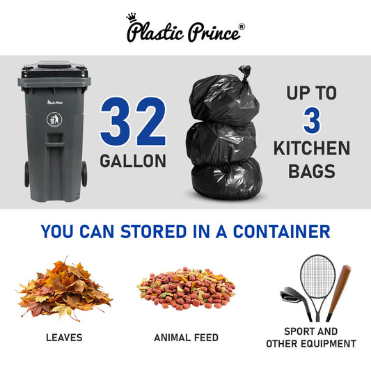 32 Gallon Trash Can with Wheels Outdoor Garbage Can with Lid and Wheels Locking Trash Can Commercial Heavy-Duty Trash Bin Rolling, Plastic Gray
