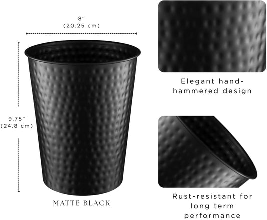 Monarch Abode Black Hand Hammered Metal Wastebasket for Home Office Bedroom, Decorative Waste Basket, Modern Bathroom Garbage Can, Durable & Decorative Trash Bin, Black Bathroom Trash Can