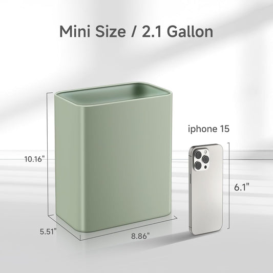 TIPGO Small Metal Trash Can, 2.1 Gallon Slim Trash Can for Bathroom, Wastebasket Garbage Bin for Bedroom, Office, Kitchen, Under Sink (Green)