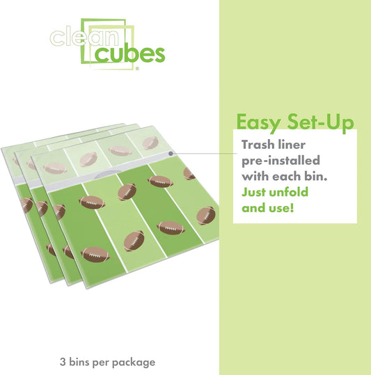 | 13 Gallon Disposable Trash Cans (3-Pack) with Fitted Trash Bags - Reusable Garbage and Recycling Bins for Parties, Events, and More (Tailgating - 17" Height x 13.5" Width x 10" Depth)