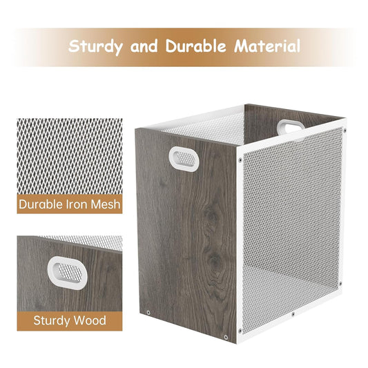 Office Trash Can, Rectangular Kitchen Garbage Can, Iron and Wood Combination Bathroom Trash Can, Modern Design Wastebasket Bin for Bathroom, Laundry Room, Kitchen, Kids' Room, Dorm(4.5 Gallon)