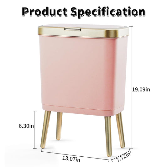 Procade 2Pack Office Trash Can with Lid, Bathroom Garbage Bin with Gold Edge, Modern Pink Trash Can for Bedroom, Slim Waste Basket Plastic Trash Bin for Room,Kitchen, Living Room,Toilet, 4 Gallon