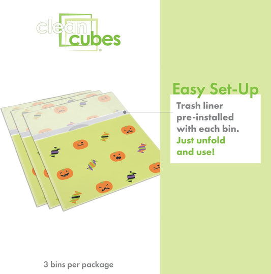 | 13 Gallon Disposable Trash Cans (3-Pack) with Fitted Trash Bags - Reusable Garbage and Recycling Bins for Parties, Events, and More (Halloween - 17" Height x 13.5" Width x 10" Depth)