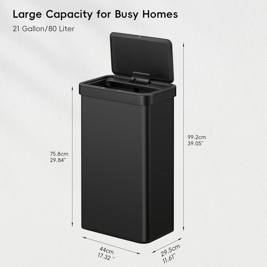EKO Nova Sensor Trash Can, 21 Gallon/80 Liter Stainless Steel Rectangular Touchless Motion Sensor Trash Can, Matte Black