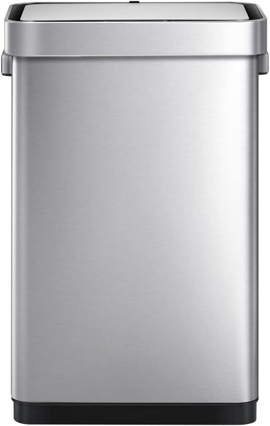 EKO Deluxe Mirage-T 50 Liter / 13.2 Gallon Touchless Rectangular Motion Sensor Trash Can, Matte Stainless Steel Finish