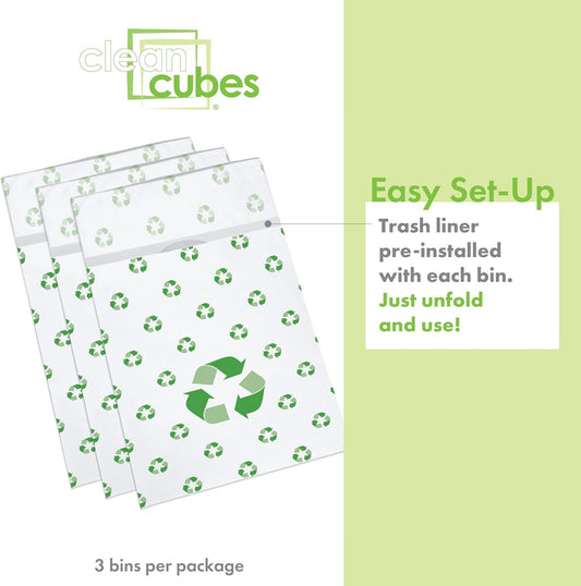 | 13 Gallon Disposable Trash Cans (3-Pack) with Fitted Trash Bags - Reusable Garbage and Recycling Bins for Parties, Events, and More (Recycle- 17" Height x 13.5" Width x 10" Depth)