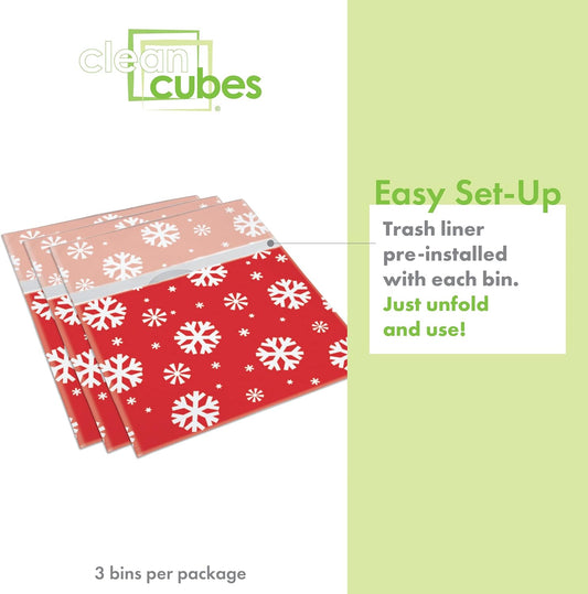 | 13 Gallon Disposable Trash Cans (3-Pack) with Fitted Trash Bags - Reusable Garbage and Recycling Bins for Parties, Events, and More (Snowflake - 17" Height x 13.5" Width x 10" Depth)