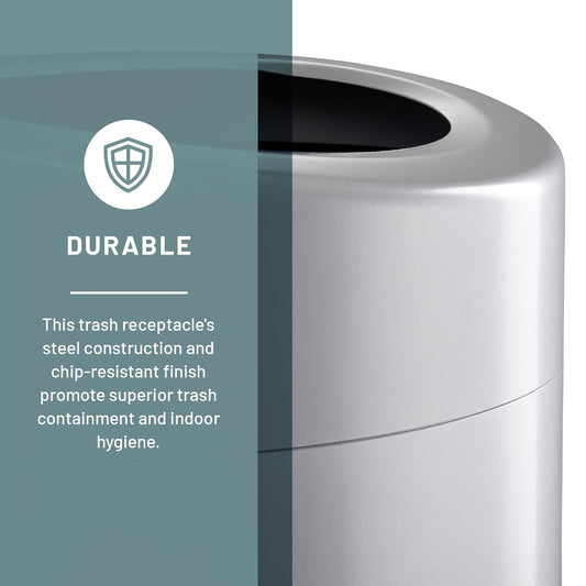 Safco Open Top Trash Can, 14 Gallon Stainless Steel Modern Garbage Can for Indoor Use, Silver