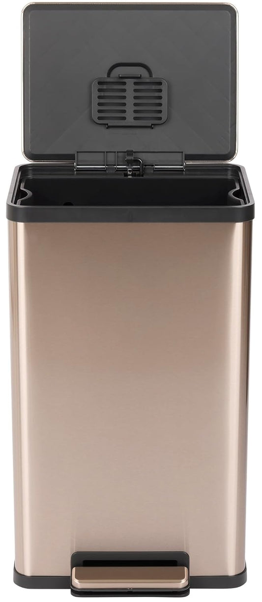 Simpli-Magic 13.2 Gallon (50L) Step Trash Can – Kitchen Garbage Can with Slow-Close Lid – Odor Control, Hands-Free, Easy to Clean, Brushed Stainless Steel (Rose Gold)