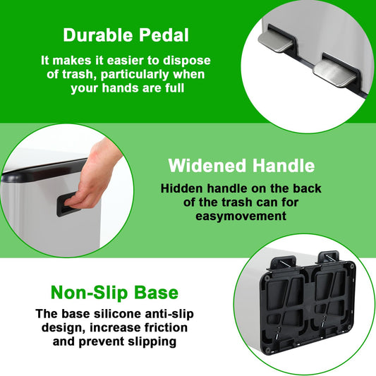 PayLessHere Stainless Steel Trash Can with Lid - Removable Inner Bucket, Foot Pedal Soft Close for Office, Home, Kitchen (White, 13 G)