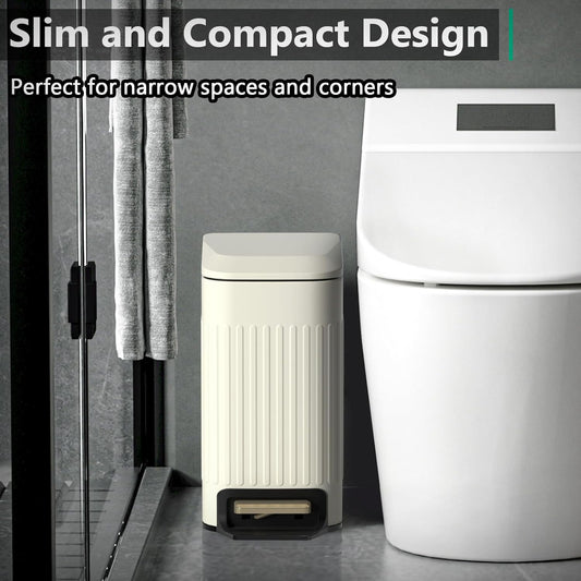 Small Bathroom Trash Can with Lid Soft Close-6L/1.6 Gal Slim Step Garbage Can-Metal Pedal Wastebasket-Narrow Rectangle Garbage Container Bin for Corner Office, Bedroom, Toilet, Live Room-Beige