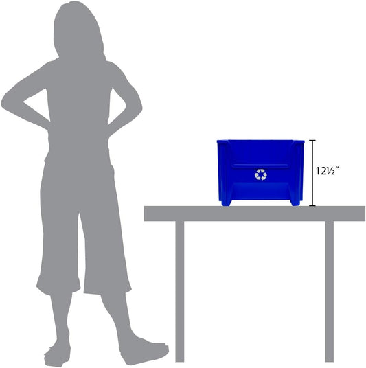 Commercial Industrial Heavy Duty Stackable Open-Front Recycling Bin Box Containers, 12 Gallon, 2 Pack, Blue
