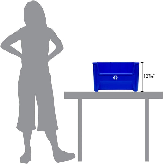 Commercial Industrial Heavy Duty Stackable Open-Front Recycling Bin Box Containers, 12.5 Gallon (Pack of 3), Blue