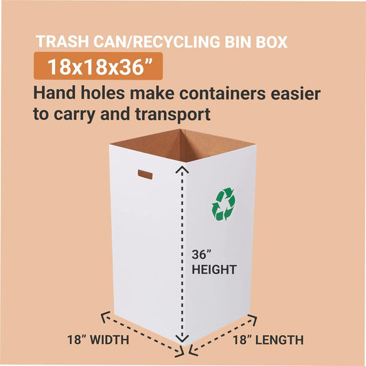 AVIDITI Cardboard Trash Cans and Recycling Bins, 50 Gallon 18"L x 18"W x 36"H (10-Pack) Reusable or Disposable Pop Up Garbage Boxes for Parties, Outdoor Events, Heavy Duty, Recycle