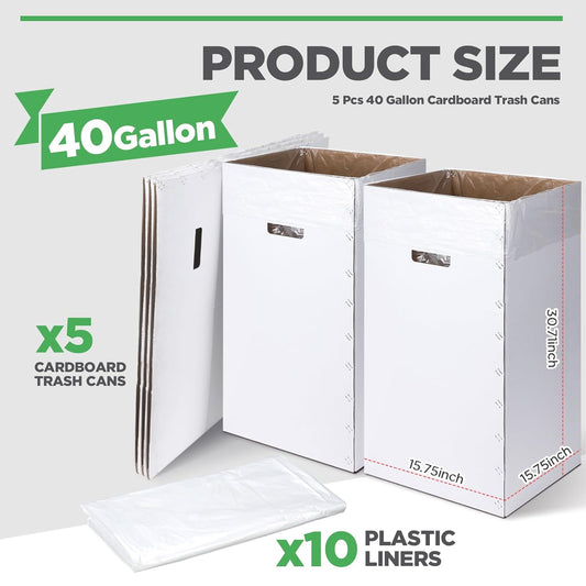 Tioncy 5 Pcs Cardboard Trash Cans Disposable and Reusable Corrugated Cardboard Trash Cans Recycling Bins Bulk with 10 Garbage Bags White Garbage Boxes for Parties Events