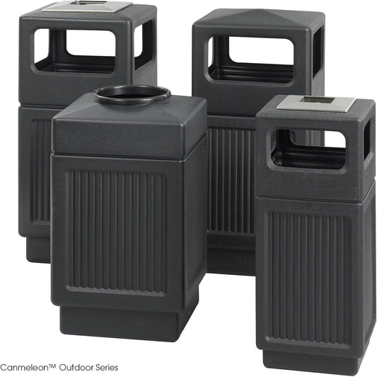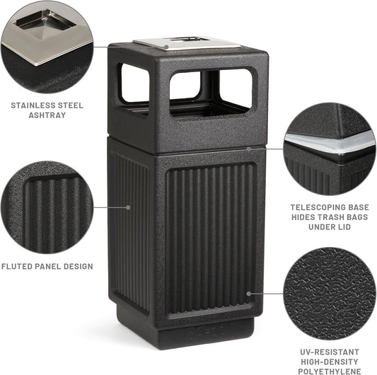 Safco Canmeleon Trash Can, Indoor and Outdoor Use, Durable & Weather-Resistant Commercial Garbage Can with Ashtray, Black