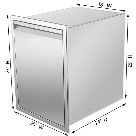 Pull-Out Double Trash Drawer Stainless Steel Outdoor Kitchen Trash Drawer Storage for Two 10 Gallon Commercial Wastebaskets…