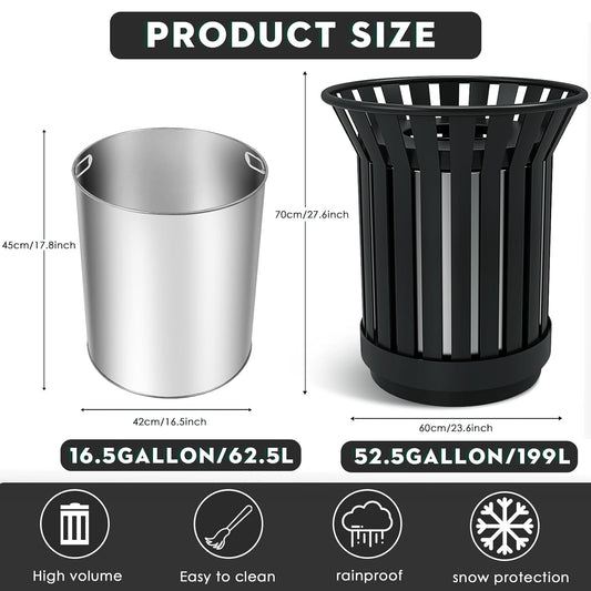 27.6IN Round Large Outdoor Trash Can, Heavy Duty Metal Slatted Garbage Can Outdoor, All Weather Resistant Commercial Garbage Cans, Waste Receptacle in Park, School, Beach, Patio Black