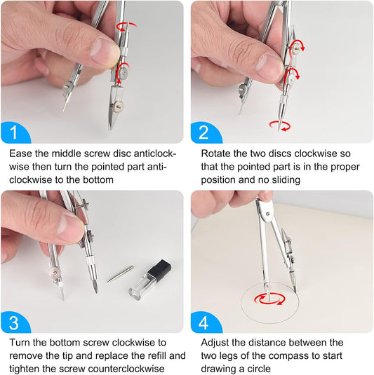 STAEDTLER Advanced Student Compass 2 Piece Set - Metal Compass with Quick-Set Center Wheel, Universal Adapter & Spare Lead, Draws Circles up to 10.25"