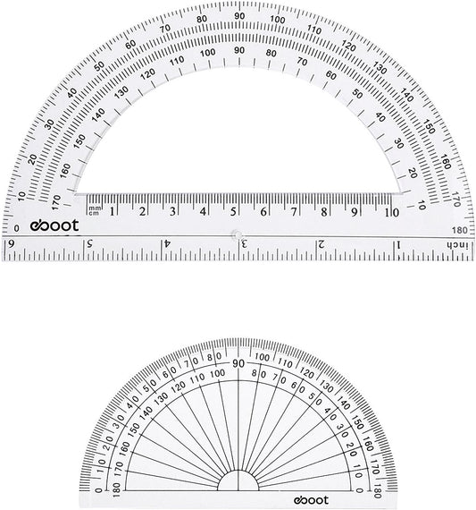EBOOT 2 Pcs Plastic Protractor Clear 180 Degrees Transparent Protractor for Geometry, 4 Inch and 6 Inch