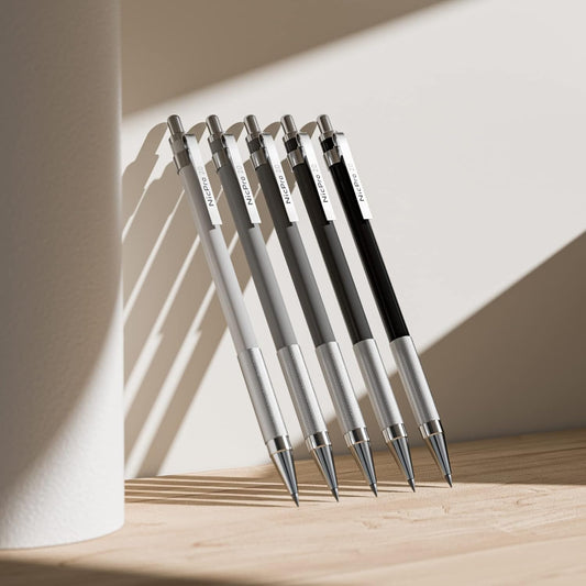 Nicpro 0.5 & 0.7 & 0.9 mm Metal Mechanical Pencil Set with Case, 6PCS MP1000 Artist Lead Pencil with 12 Tubes HB & 2B Lead Refills, 3 Erasers For Architect Art Writing Drafting Sketching Drawing