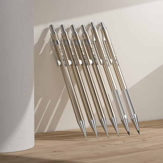 Nicpro 2mm Mechanical Pencils Set with Case, 12 Black Lead Refills,12 Colored Lead Refills, Erasers - MP2000 Weatherproof Metal Lead Holder, Heavy Duty Carpenter Pencil For Writing Drawing Woodworking