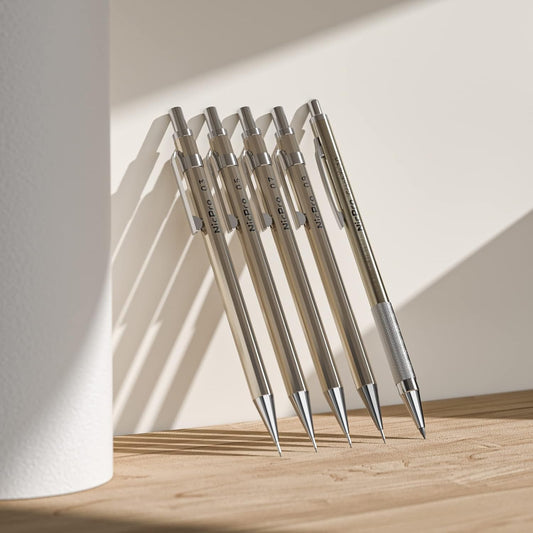 Nicpro 20PCS Metal Mechanical Pencil Set in Leather Case, 0.3 & 0.5 & 0.7 & 0.9 mm & 2mm Lead Pencil Holders, (4B 2B HB 2H) Lead Refills (Black & Colors), Erasers, For Art Drafting Sketching Drawing