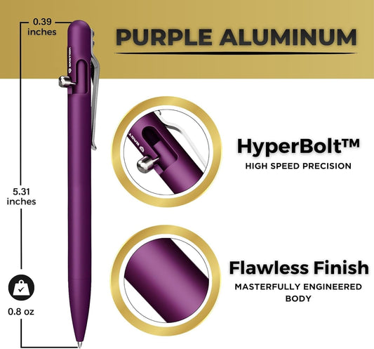 BASTION® Luxury Slim Bolt Action Pen, Lightweight Aluminum EDC Pen with Fine Tip, Professional Ballpoint Pen for School and Work - Purple
