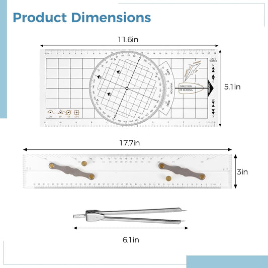 3 Pcs Basic Navigation Set, Including Marine Parallel Ruler, Nautical Protractor, and Navigation Fixed Point Divider, Marine Accessories with Clear Scales for Boat