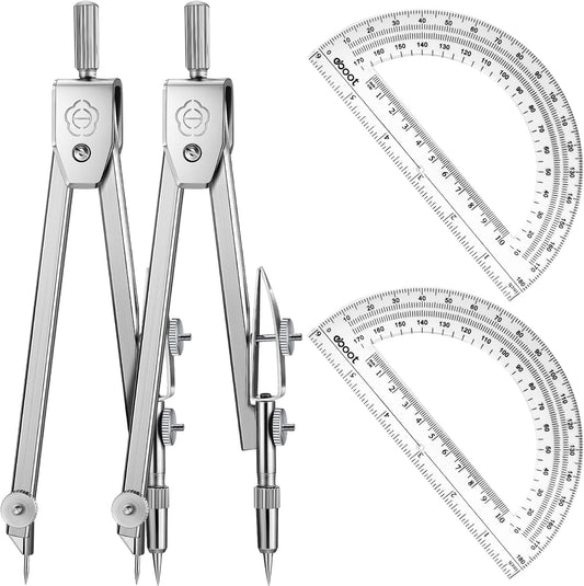 Compass and Protractor Set, Professional Drawing Compass Tool, Metal Compass with Extra Refills, Compass for Geometry and 6 Inch Math Protractors 180 Degree (Black)