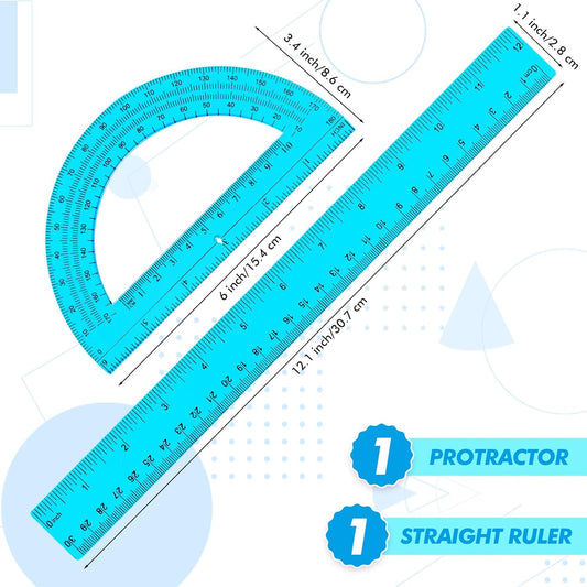 Zonon 2 Pack 12'' Plastic Ruler and 6'' Plastic Protractor Set Clear Ruler Protractor Set Math Geometry Supplies for School Classroom Home Office Drawing(Blue)