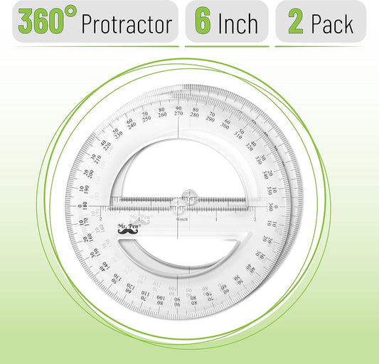 Mr. Pen- Protractor, Pack of 2, Protactor 360 Degree, Protractor Set, Protractor Ruler, Drafting Tools, Circle Protractor, Protractors Classroom Set, Large Protractor, Math Geometry Set