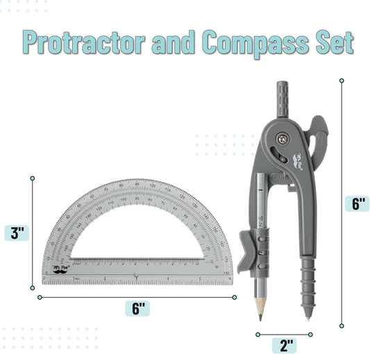 Mr. Pen- Compass and Protractor Set, Geometry Kit, Compass Protractor Set, Protractor, Compass for Geometry, Math Compass, Compass School, Math Compass and Protractor, Back to School Supplies