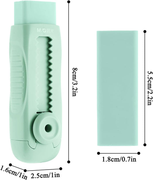 M&G 4+1 Pack Rubber Erasers Sliding Retractable Eraser, Soft Cute Erasers Push Pull Large Pencil Eraser with Plastic Sleeve 4 Refill Eraser for Students Kids, School Office Home Supplies (Green)