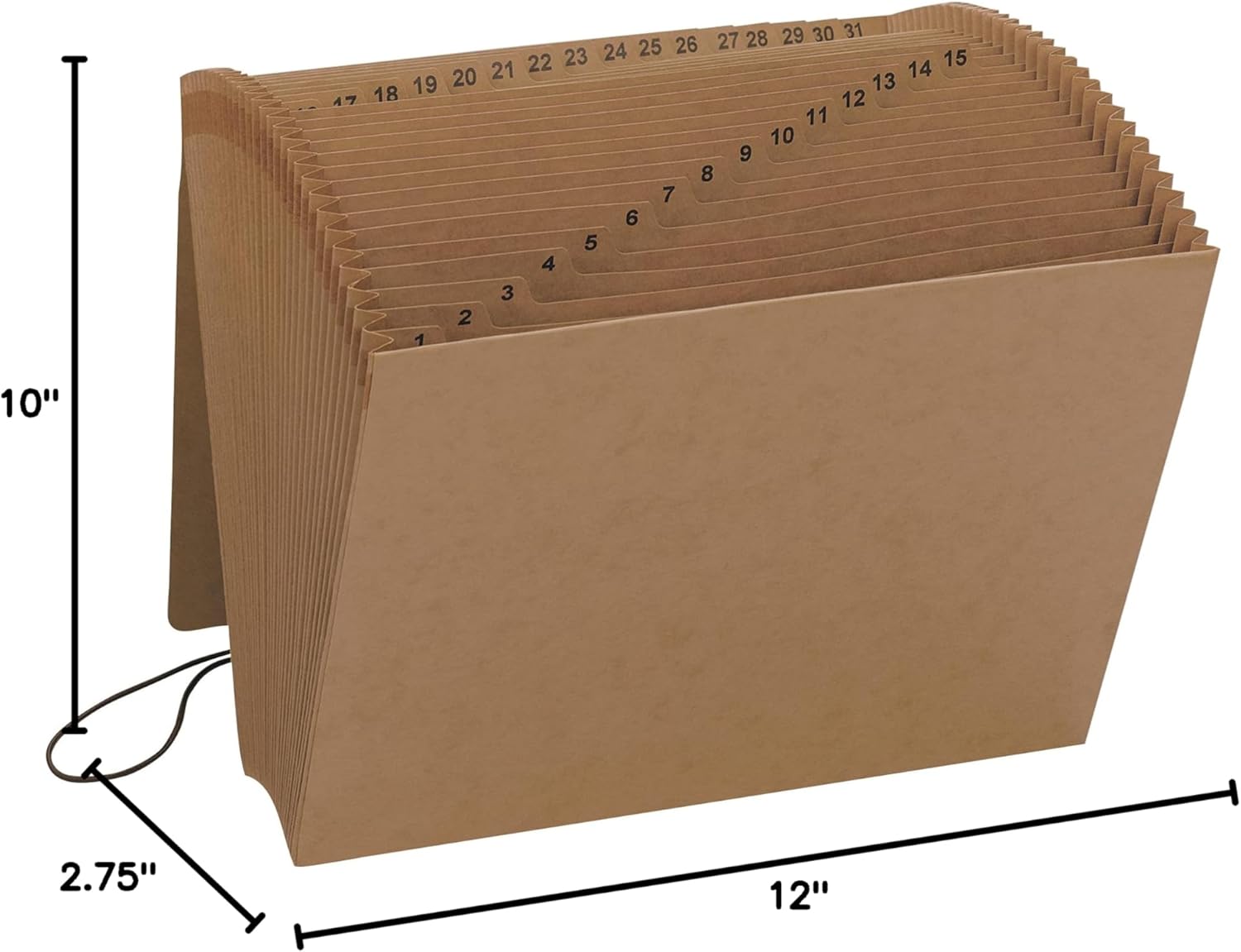 - Includes 1 letter size (12" W x 10" H) expanding file featuring 31 pockets with daily (1-31) indexing for organizing, storing and transporting large amounts of paperwork