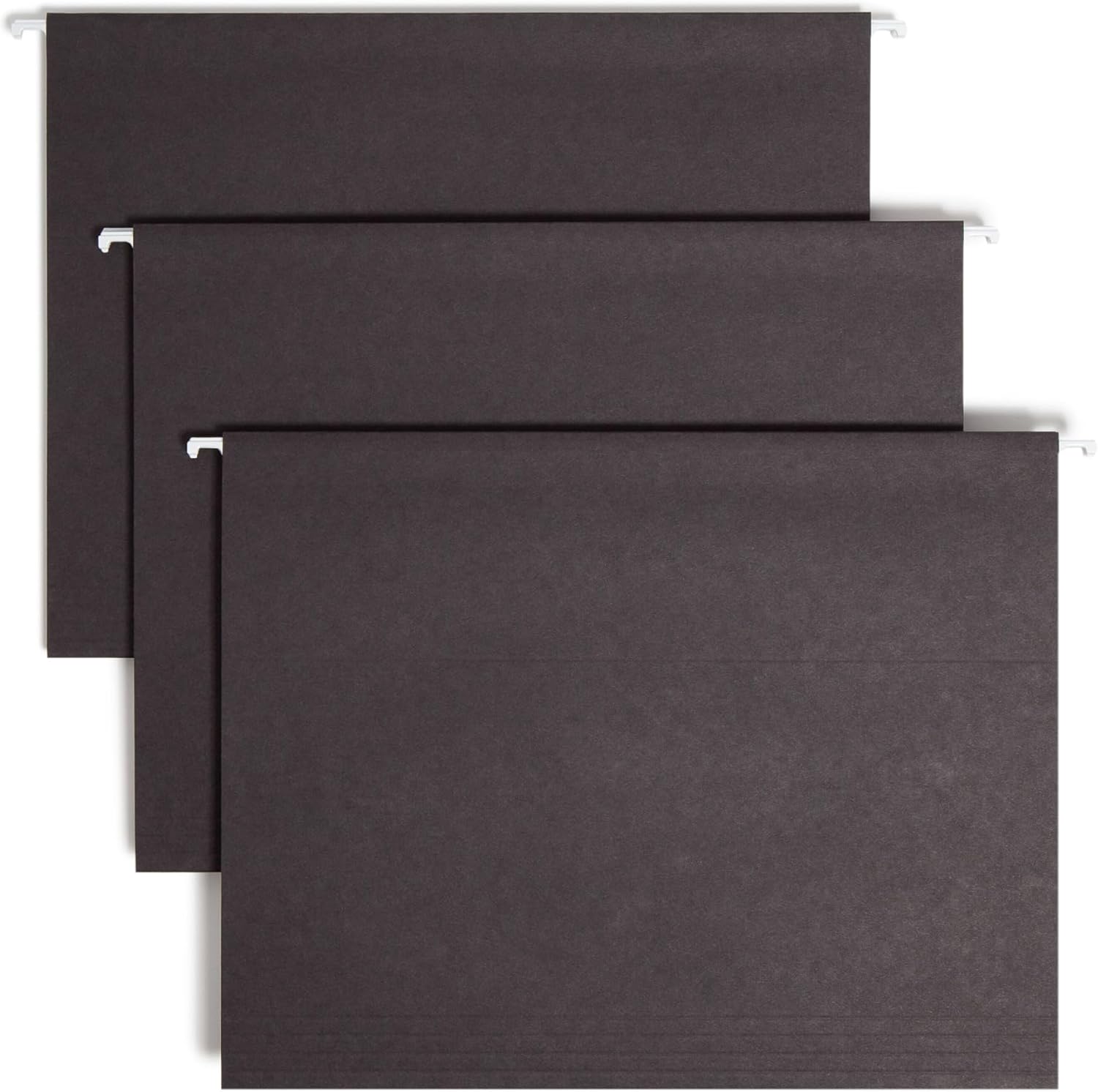 Smead Standard Hanging File Folders, 25 Count, Black, 1/5-Cut Adjustable Tabs, Letter Size (64062)