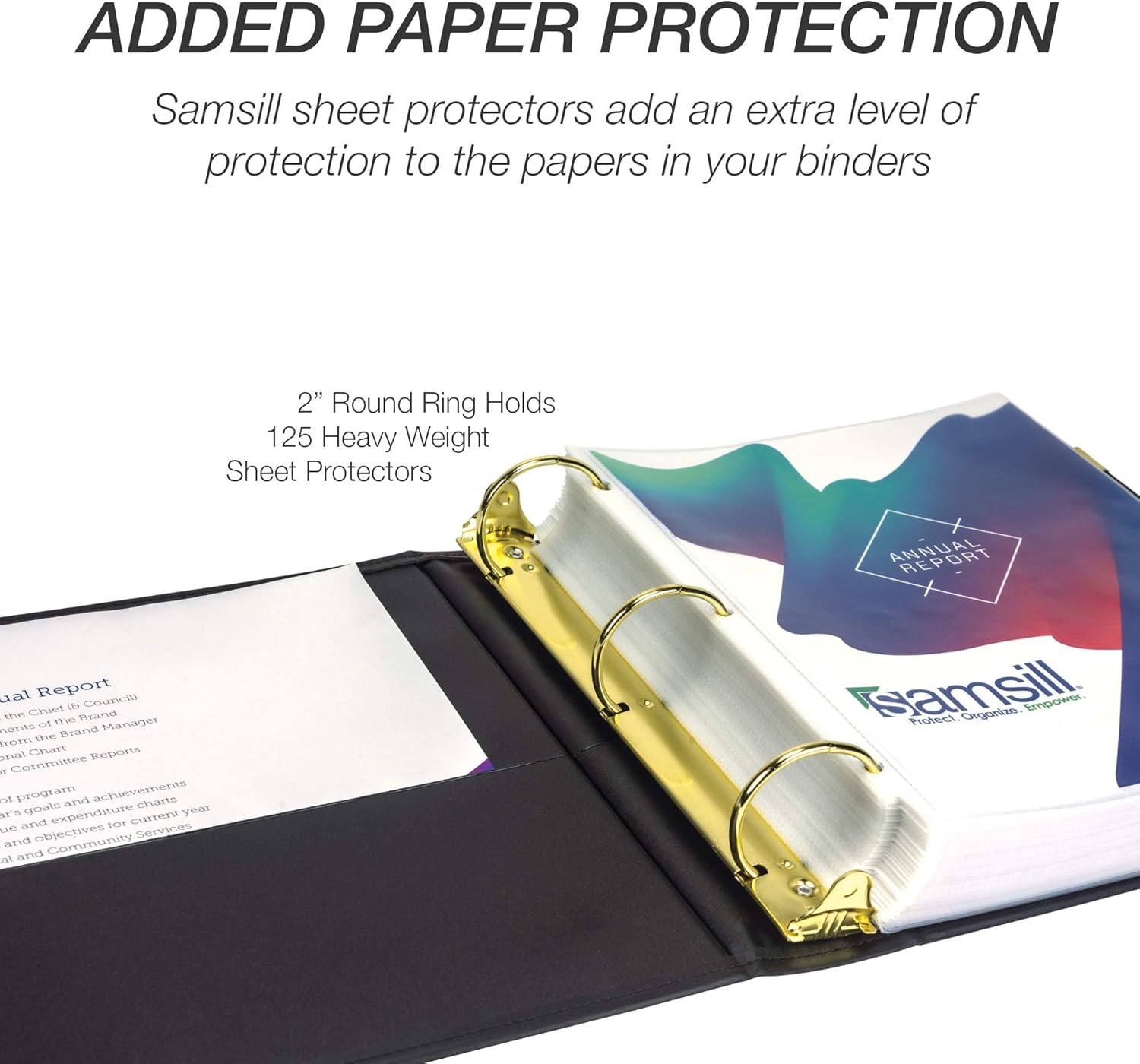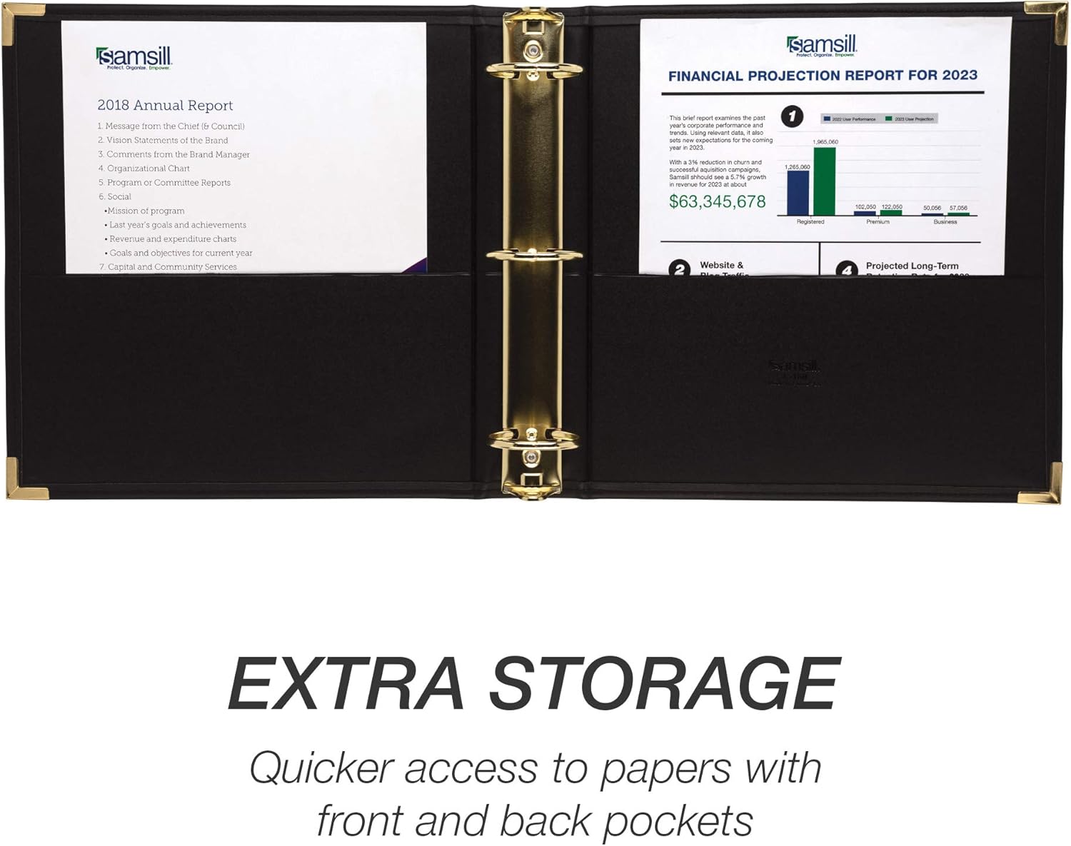 Samsill Classic Collection Leather 3 Ring Binder, Executive Presentation Portfolio, 2 Inch (Holds 425 Sheets), Brass Round Ring, Black