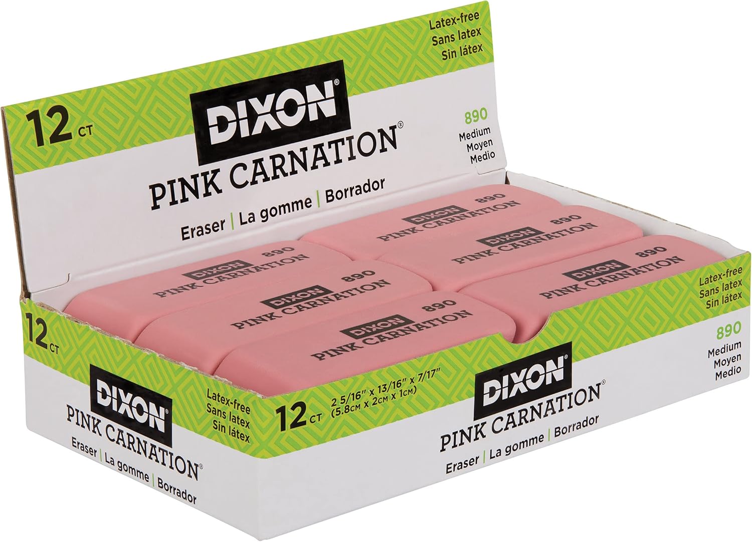Dixon Pink Carnation Wedge Erasers, Medium, Pink, 2" x .75", 12-Pack (38900)