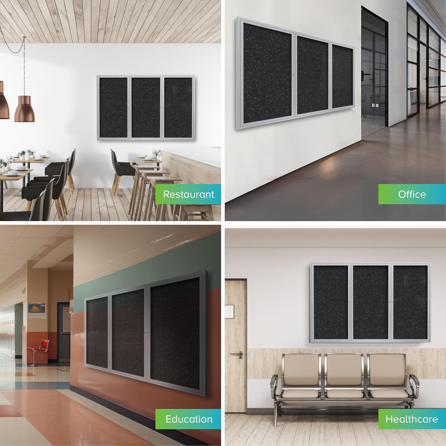 Ghent 48" x 72" 3-Door indoor Enclosed Recycled Rubber Bulletin Board, Shatter Resistant, with Lock, Satin Aluminum Frame,Confetti (PA346TR-CF),Made in the USA