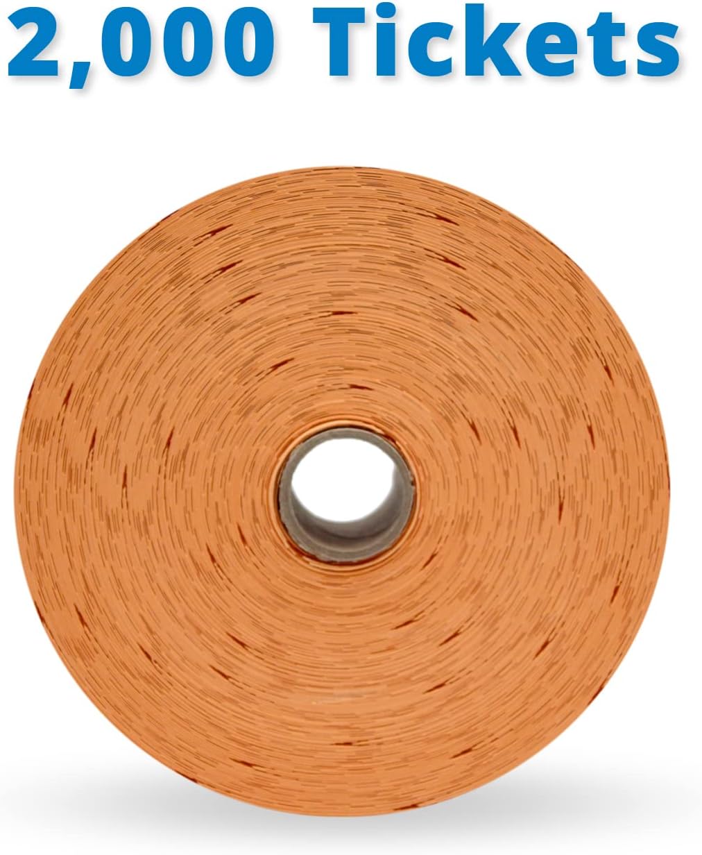 INDIANA TICKET CO. 2,000 Orange Raffle Tickets Double Roll, Premium Quality 50/50 Raffle Tickets, Tickets for Events, Carnivals, Door Prizes, Drinks and More
