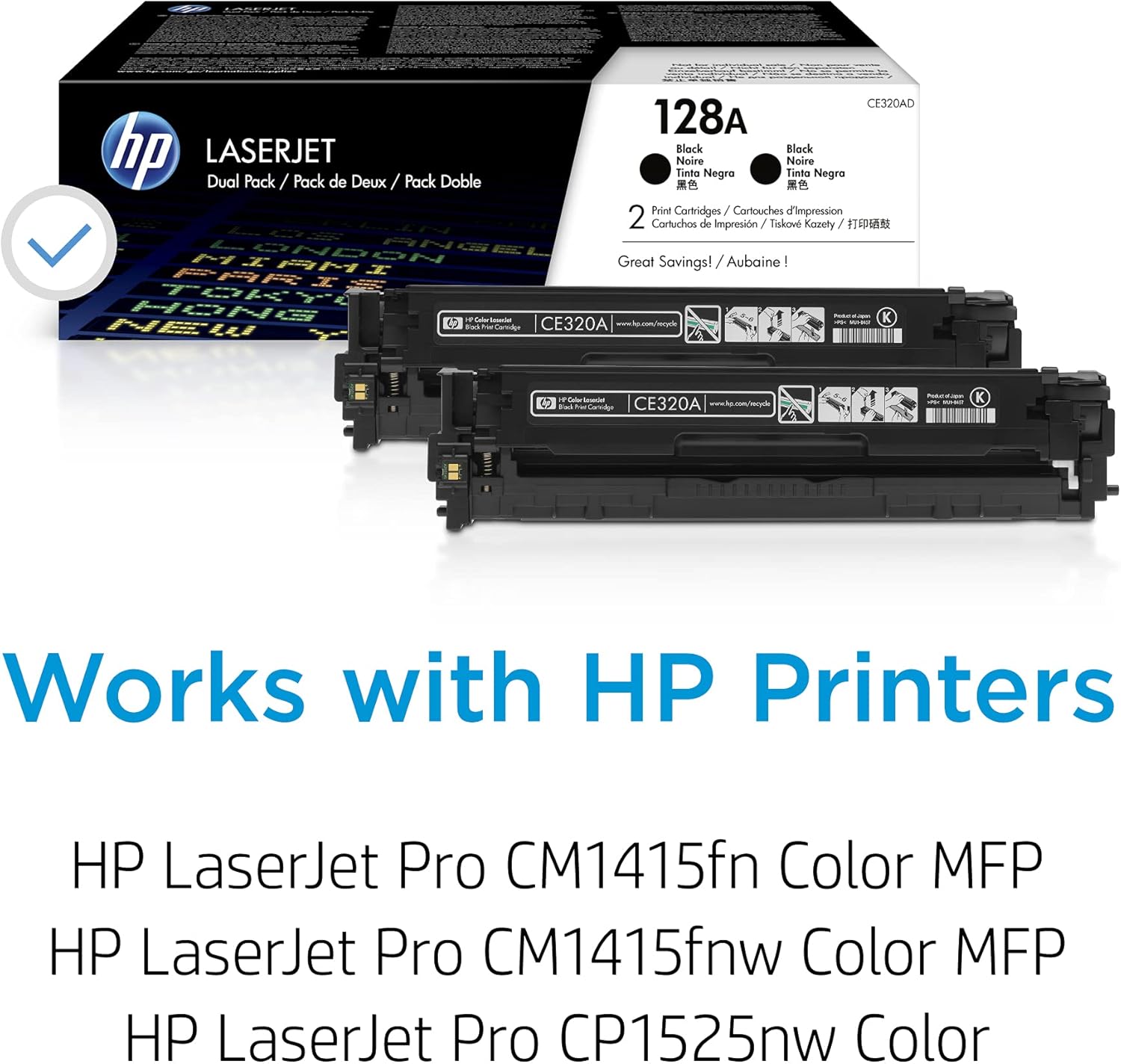 HP Original 128A Black Toner Cartridges (2-pack) | Works with LaserJet Pro CM1415 Color, CP1525 Color Series | CE320AD
