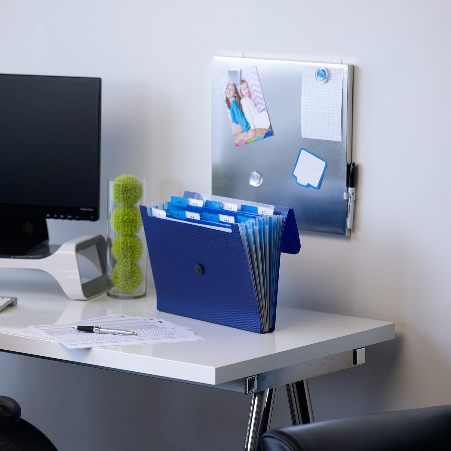- Includes 1 letter size (13” W x 10” H) embossed poly organizer in navy blue with 12 pockets and indexed dividers to keep your documents sorted wherever work takes you
