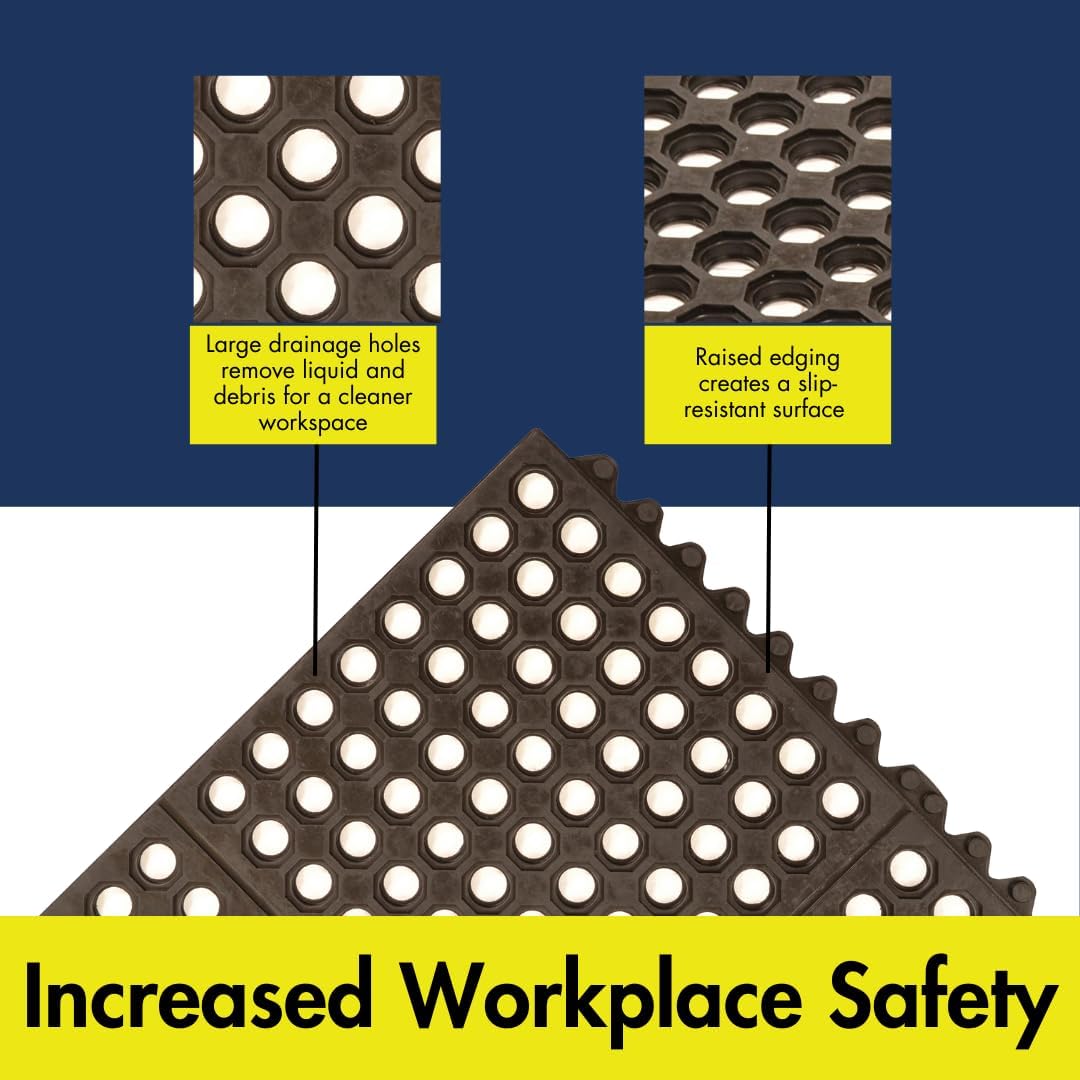 NoTrax 3' x 3' Light-Duty Rubber Drainage Mat, Customizable Modular Interlocking Design with Ergonomic Support, Lightweight, Anti-Fatigue, Non-Slip Surface, Black, 501S0033BL