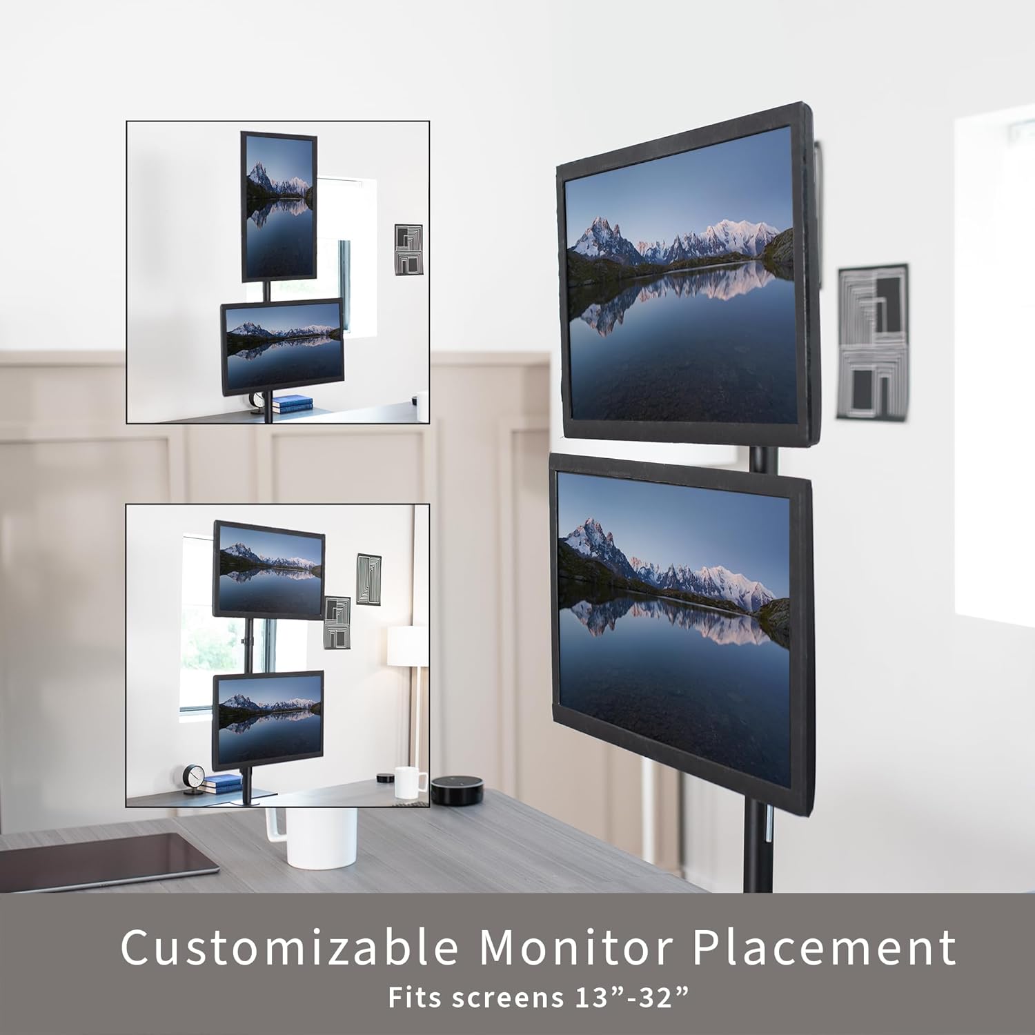 - Ultrawide Compatibility: Dual vertically stacked monitor mount fitting two ultra-wide screens 13” to 34” in size and up to 22 lbs in weight (each) with VESA 75x75mm or 100x100mm mounting holes