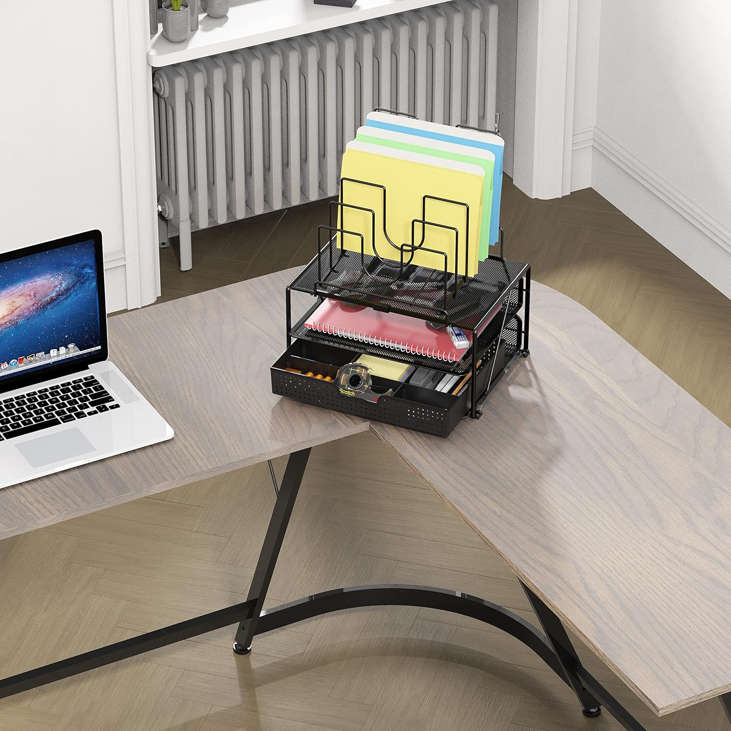 Deco Brothers Desktop File Organizer with Double Tray and 5 Folder Stand, Black
