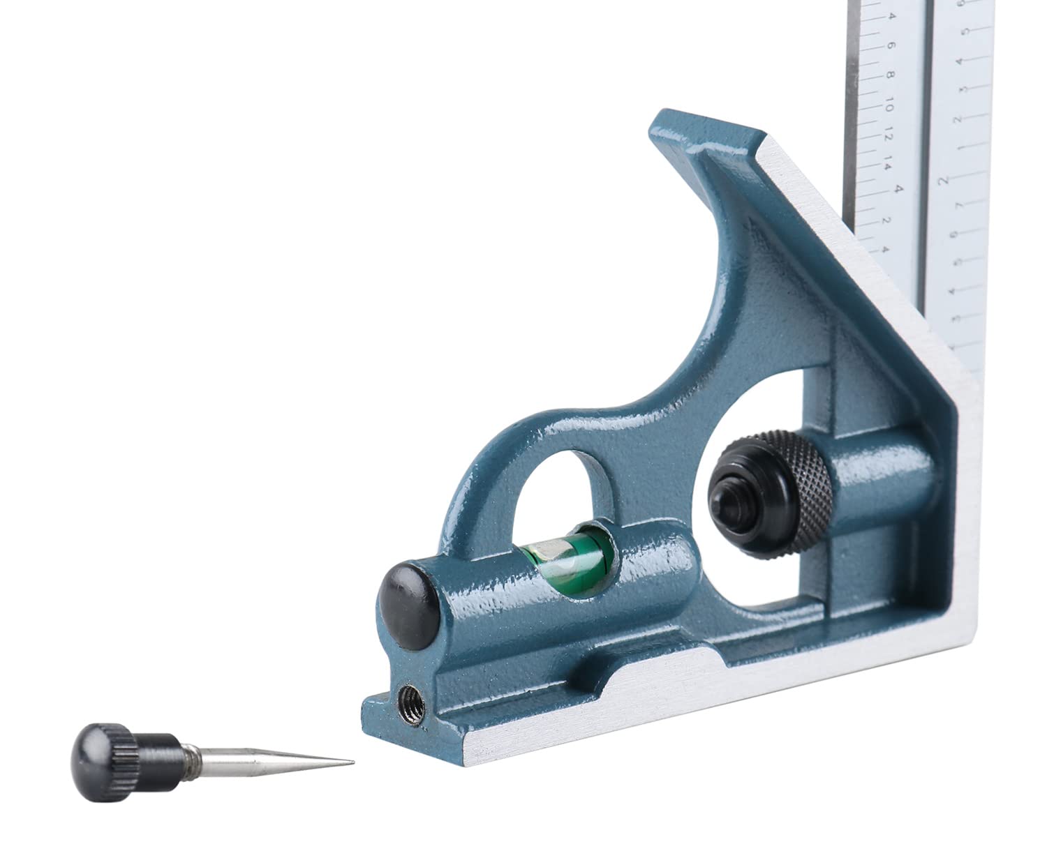 Accusize Industrial Tools 6'' 3 Pc Combination Square Ruler Set Protractor Satin, 4-R Graduation, 0000-8100