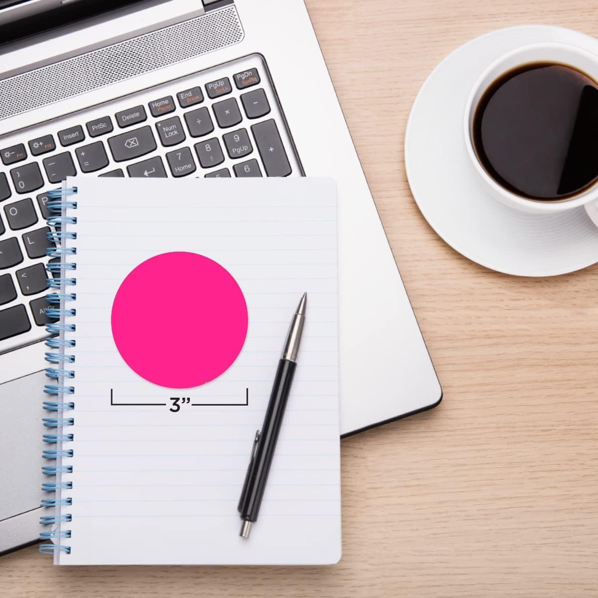 - Vibrant Fluorescent Pink Circle Label Stickers; Featuring a fluorescent matte finish, these color coded stickers offer eye-catching visibility, enhancing organization and identification.
