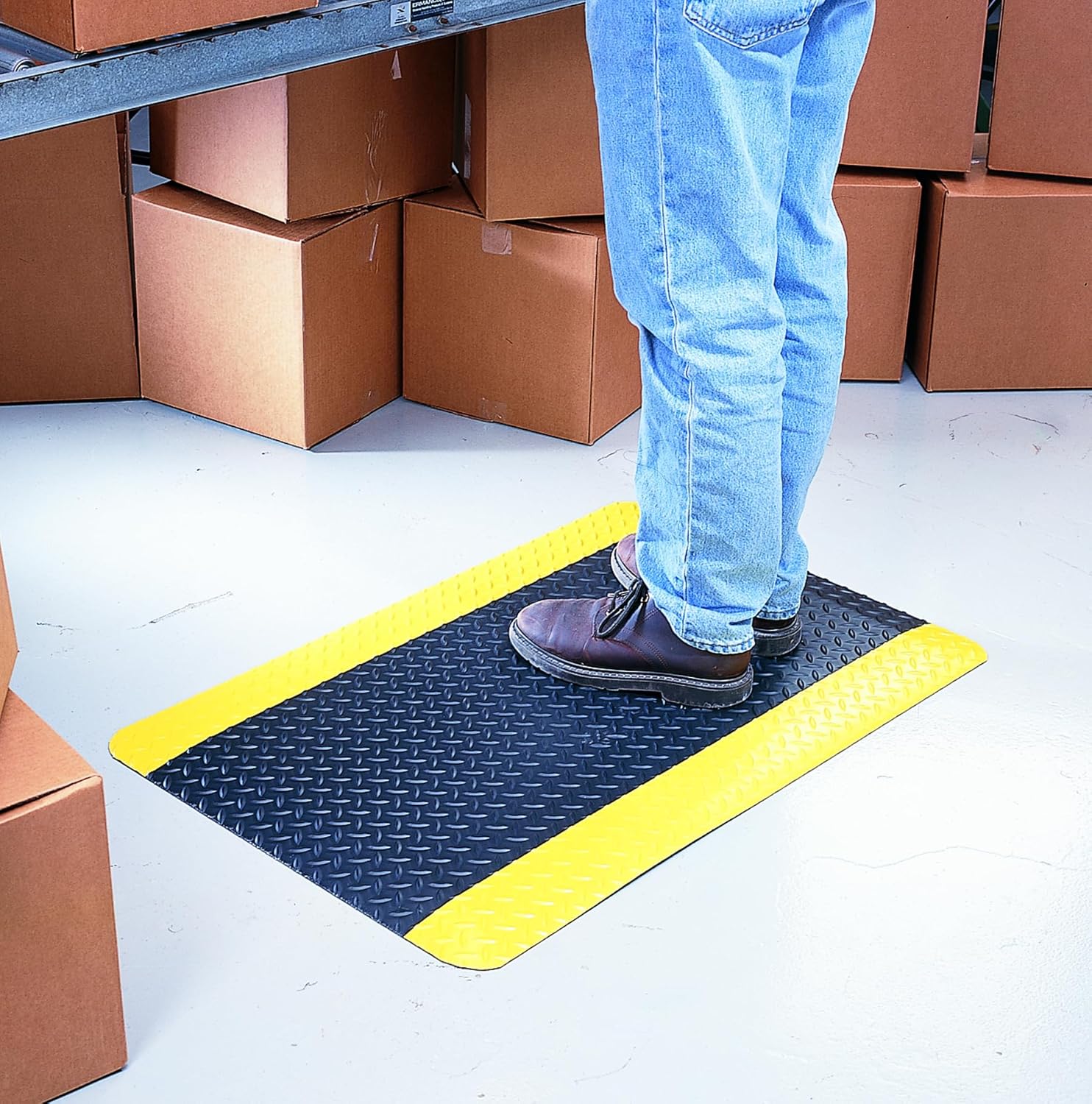 Wearwell 414.1516x2x4BYL Diamond-Plate SpongeCote UltraSoft Mat, 4' Length x 2' Width x 15/16" Thick, Black with Yellow